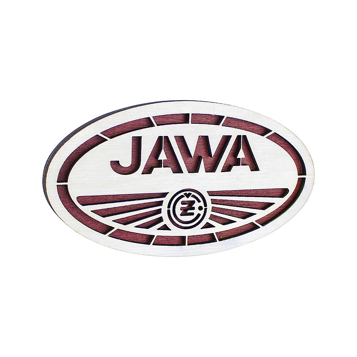 Drewniany magnes logo Jawa/ČZ - 10x5,5cm