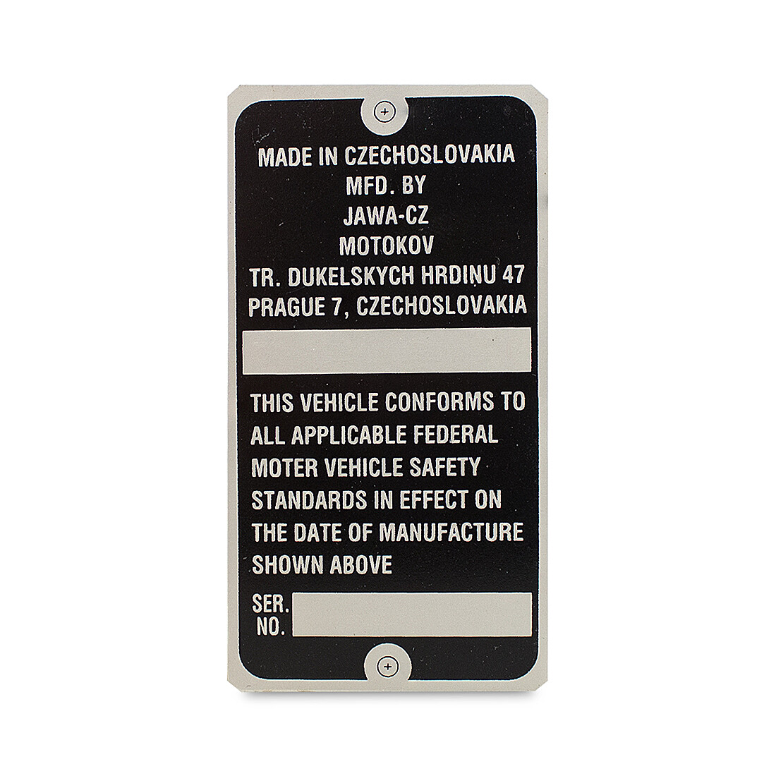 Etykieta na ramę ČZ enduro typ 988, 992 - angielska