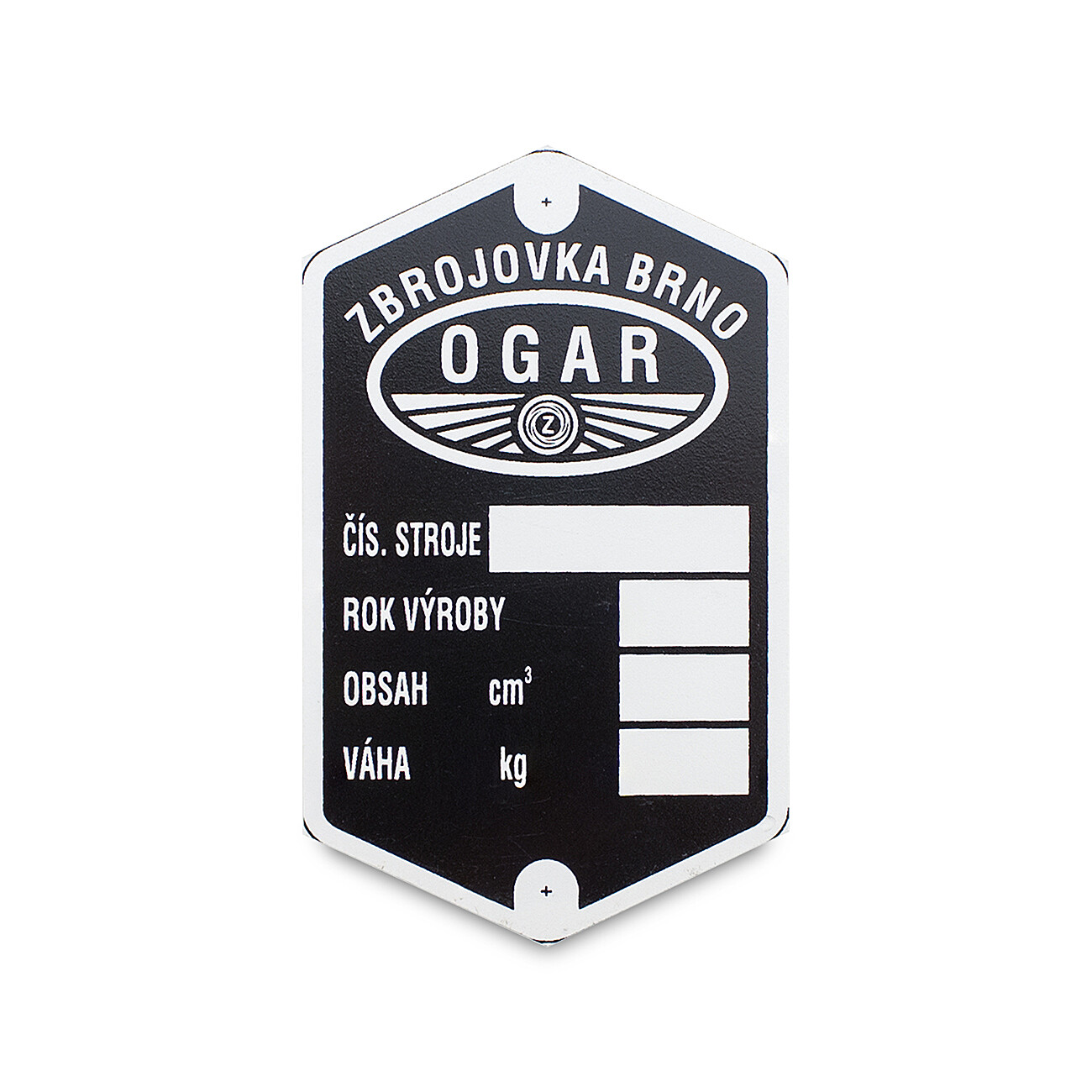 Drukowana aluminiowa etykieta na ramę motocykli Jawa.