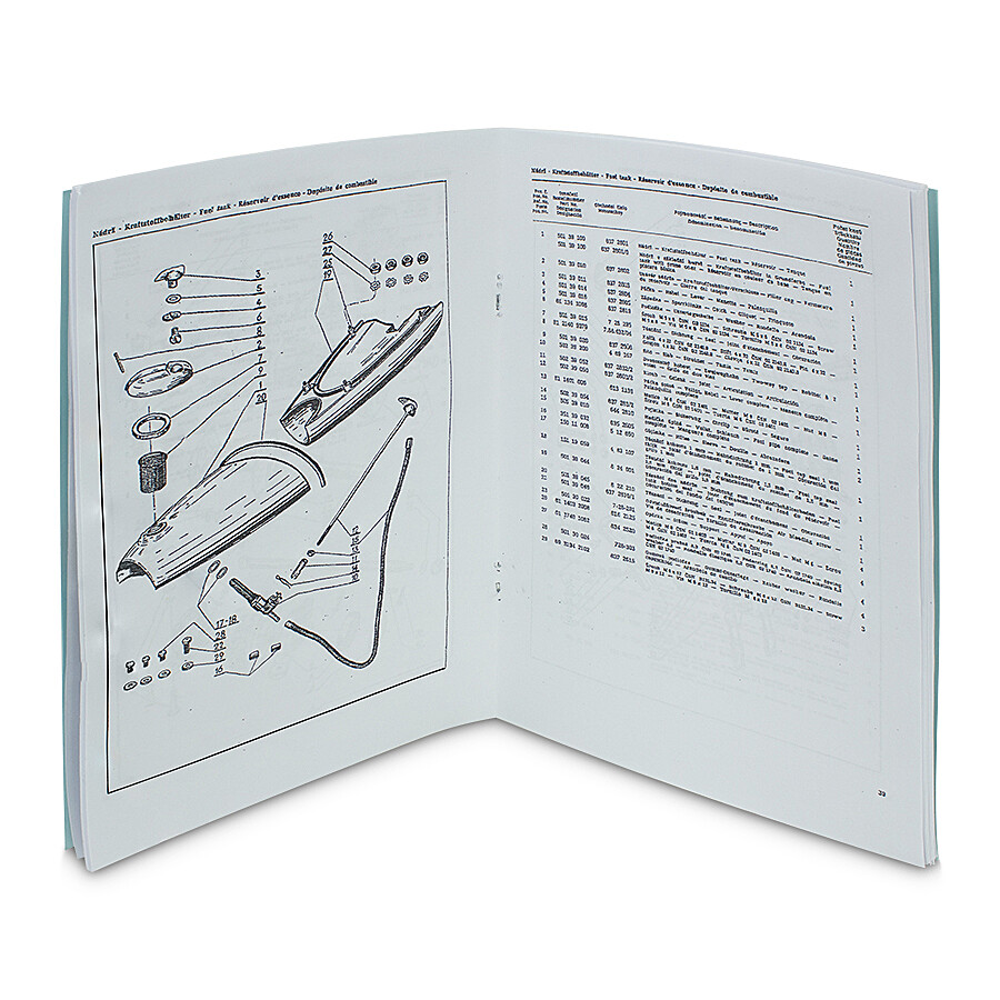 Katalog części zamiennych zawiera poszczególne rozdziały z pełną listą i liczbą części zamiennych, uzupełnione graficzną reprezentacją.