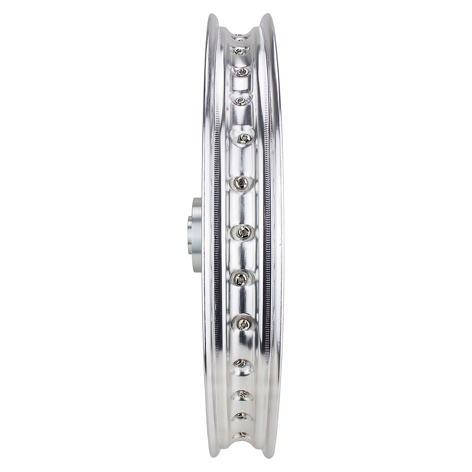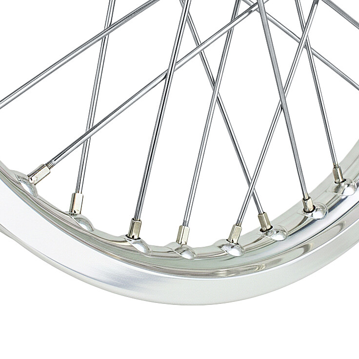 Kompletne koło przednie z aluminiową obręczą i chromowanymi szprychami, przeznaczone do hamulców tarczowych w motocyklach Simson. Koło jest kompatybilne z zestawem hamulców tarczowych ( SIM24528135 ) montowanym w oryginalnym przednim widelcu teleskopowym lub w zestawie z nowoczesnym tłumieniem ( SIM65980243 ).