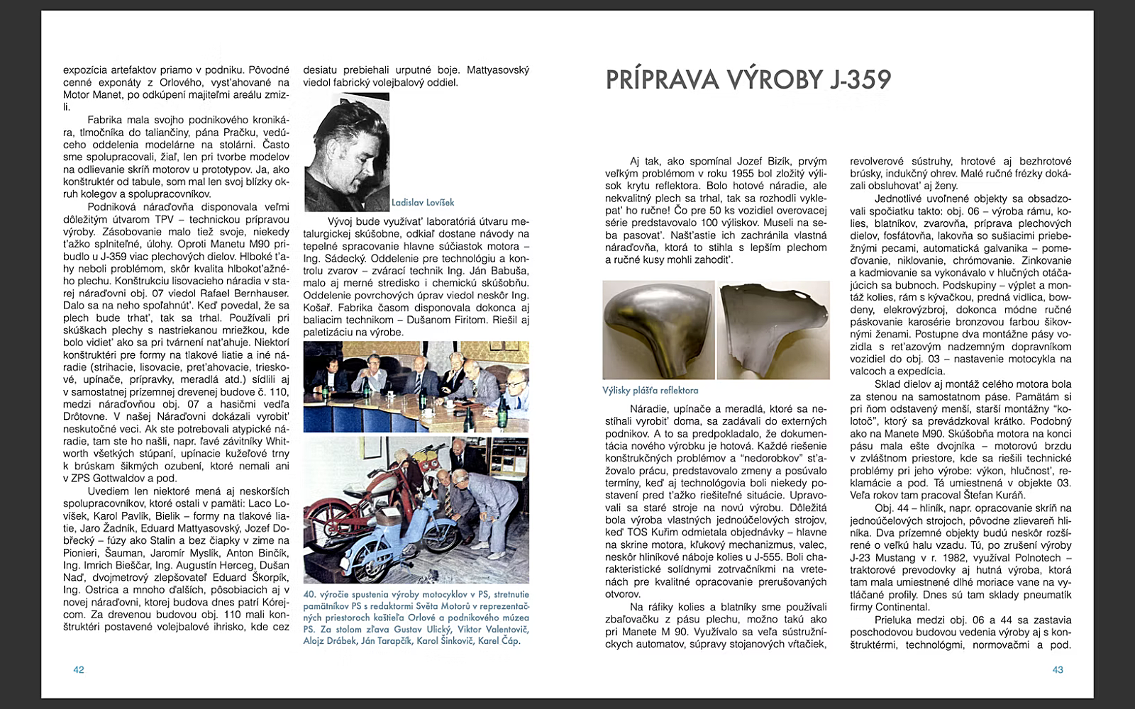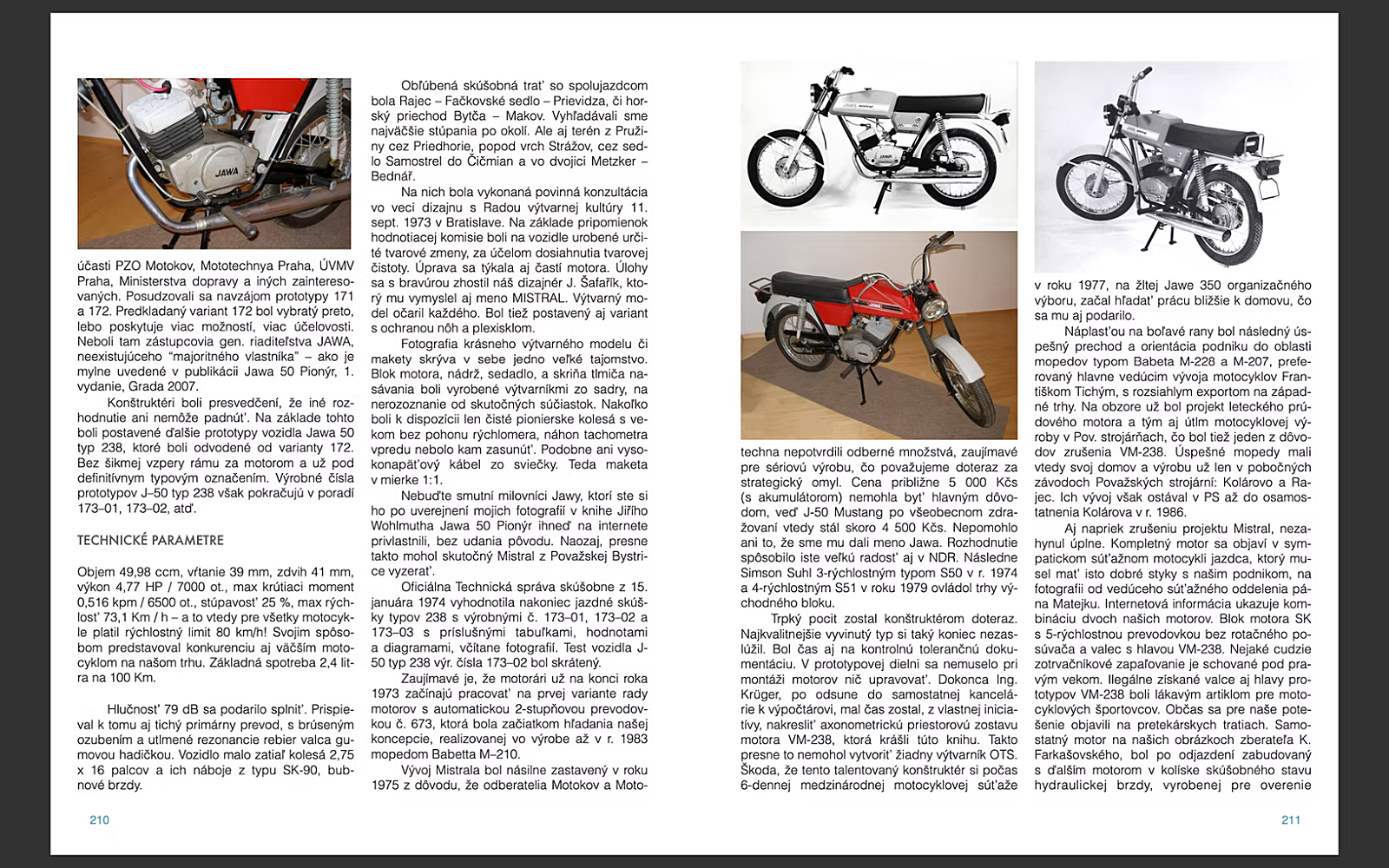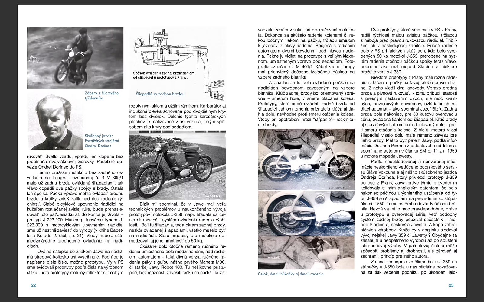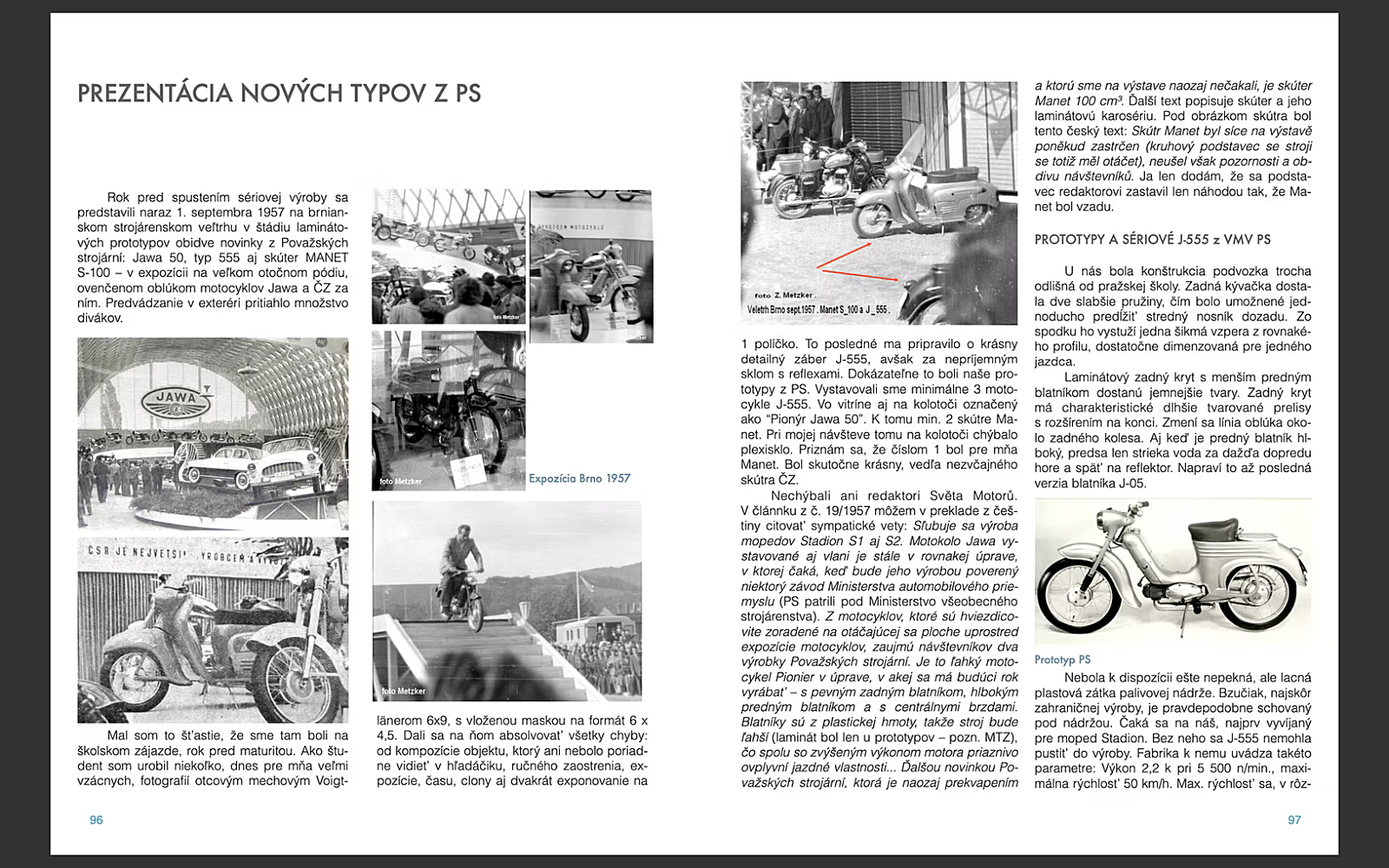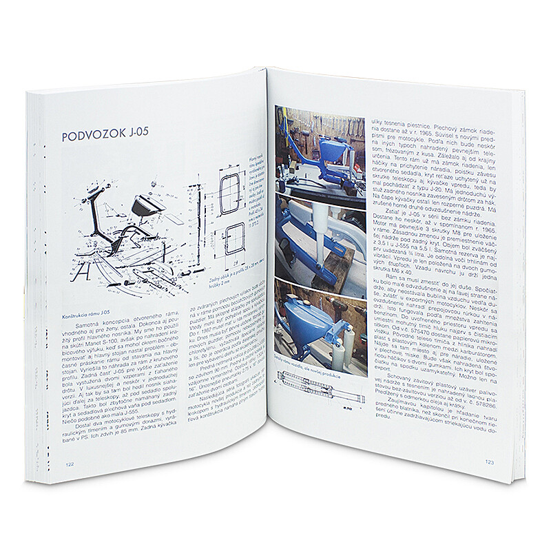Autor, projektant Zdeno Metzker, bez zbędnych upiększeń otwiera drzwi do świata produkcji i rozwoju oraz dzieli się swoimi osobistymi opiniami na temat poszczególnych modeli. Publikacja stanowi cenne źródło wiedzy dla kolekcjonerów, restauratorów i miłośników historii czechosłowackich motocykli.