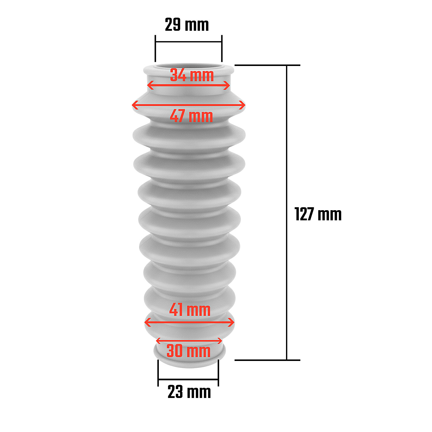 Szara gumowa tuleja przeznaczona do ochrony powierzchni ślizgowych przedniego widelca teleskopowego przed brudem i kurzem.