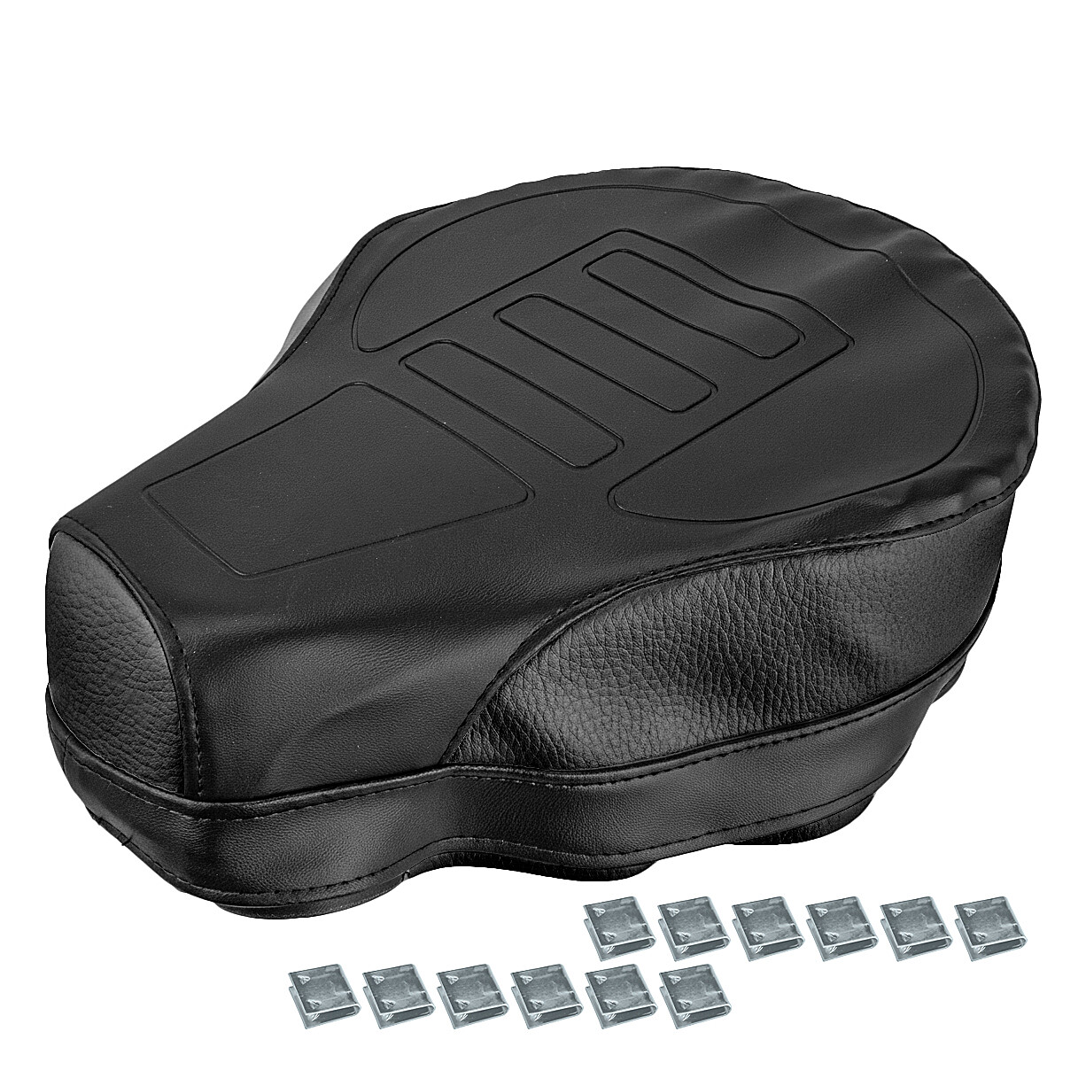 Pokrowiec jest przeznaczony do oryginalnego siedzenia motocyklowego Babetta. Montaż odbywa się poprzez naciągnięcie nowego pokrowca na oryginalną piankę, naciągnięcie wewnętrznej krawędzi na metalową krawędź siedzenia, a następnie zamocowanie go za pomocą dołączonych klipsów. Procedura mocowania za pomocą klipsów jest przedstawiona na załączonej dokumentacji fotograficznej.