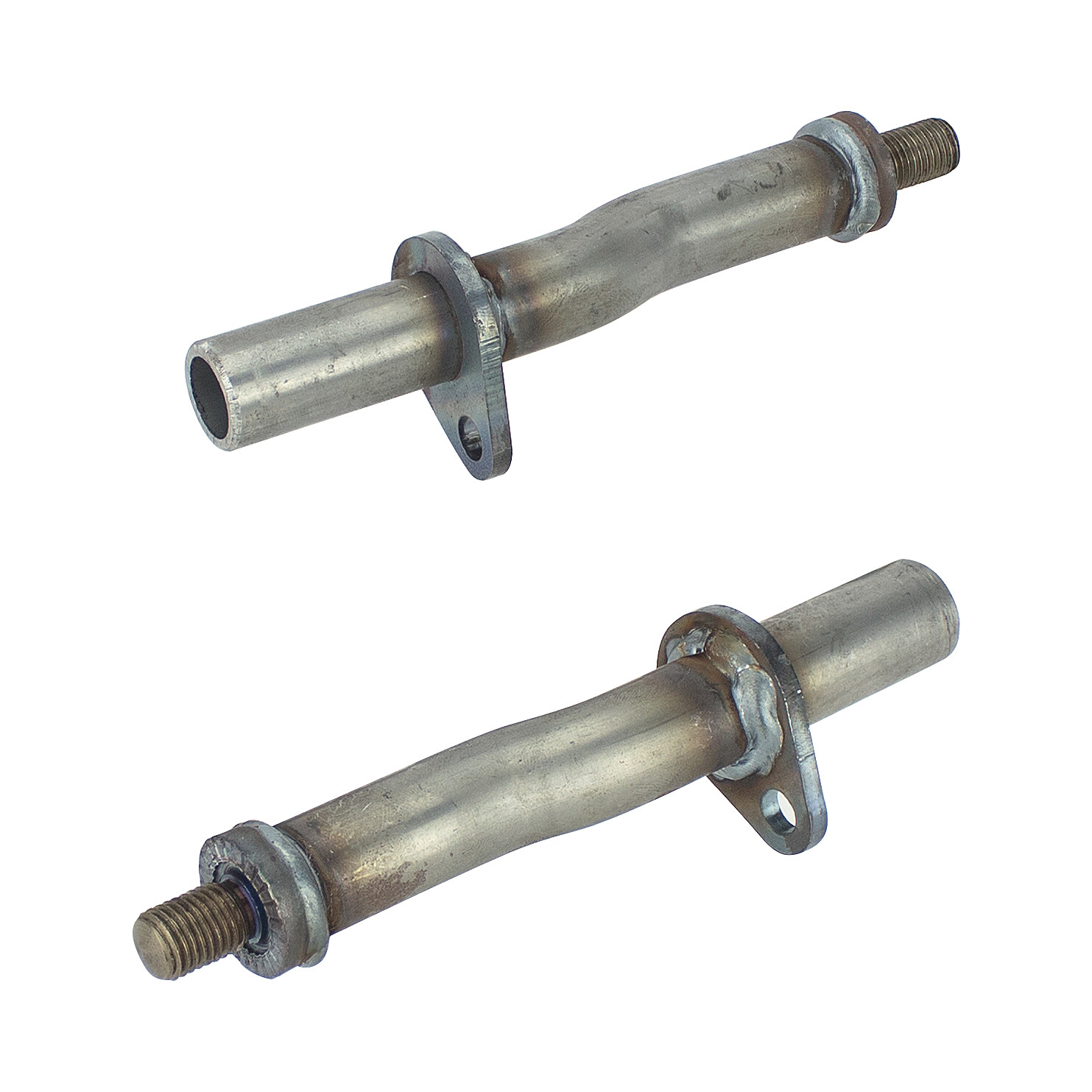 Zestaw uchwytów na przednie podnóżki zaprojektowanych do motocykla Jawa 350 Pérák. Zawiera prawą i lewą rurę. Wykonane bez obróbki powierzchniowej – stan surowy, nadaje się do dalszej modyfikacji.