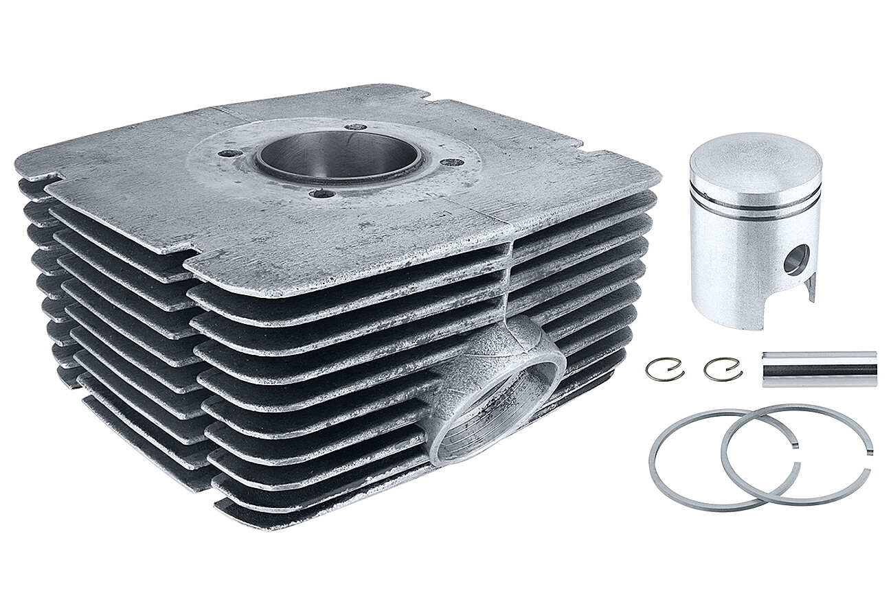 Przed zamontowaniem cylindra w silniku należy wyprasować krawędzie kanałów i wypłukać cylinder z emulsji. Obróć prawidłowo tłok (strzałka do wydechu), wyreguluj luz w zamku pierścienia tłokowego i przed włożeniem go w tłok wygładź krawędź sworznia tłokowego, aby ładnie wsunął się w tłok i nie wziął wióra.