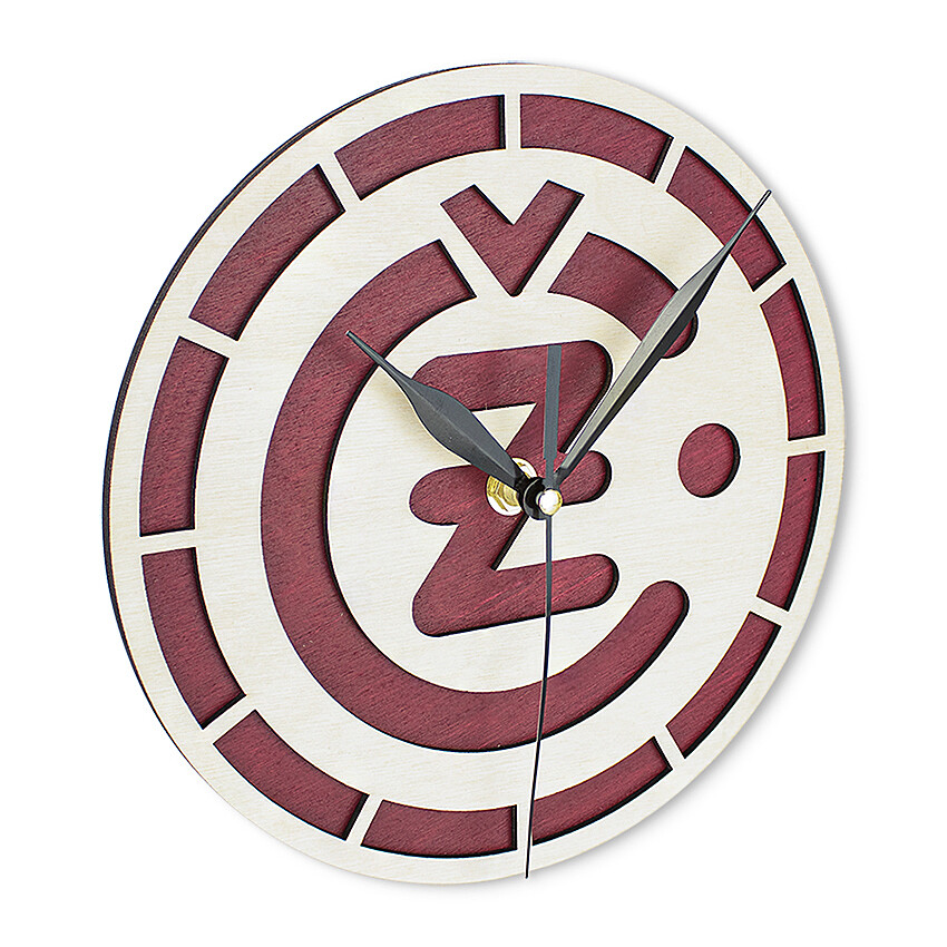 Bardzo ładny zegar ścienny, materiał: sklejka 6mm, zegar składa się z dwóch części ciętych laserowo, dolna część jest lakierowana dzięki czemu logo pięknie się wyróżnia.