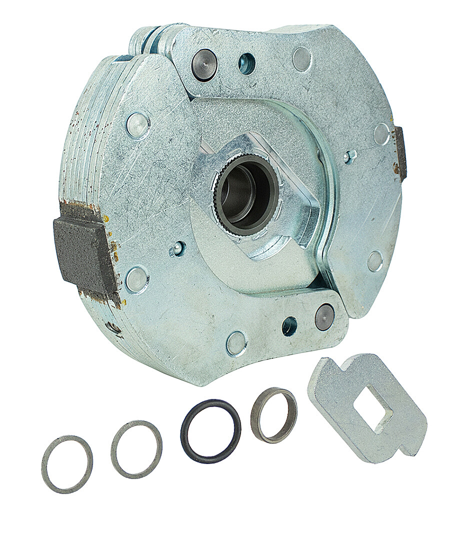 Zestaw jest zmontowany tak, jak pokazano na zdjęciu. Następujące części, które można wykorzystać z oryginalnego sprzęgła, nie są dołączone: bęben zmiany biegów, płytka nośna, osłona szczęk zmiany biegów i nakrętki.